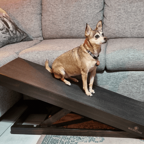 Dog Couch Ramp – Whether you have a senior dog with mobility issues or smaller dog who often jumps on and off the couch,your doggo will benefit from a Couch Ramp. Because Dog Ramps assist even healthy, younger dogs to avoid extra stress on their joints, they can prevent degenerative injuries later in life. Numerous studies have shown that the impact of dogs jumping in and out of cars or up and off of beds and couches can cause injuries, with 1 in 5 dogs developing painful Osteoarthritis later in life. So, if you’re not sure if your dog needs a dog ramp, here’s some more info for you and a comparison between dog ramps and dog steps: //thedogmom.co.za/dog-ramps-vs-dog-steps/