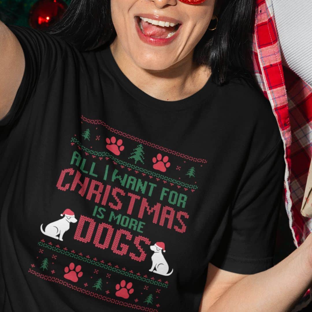 Celebrate the holiday season with a twist in our “All I Want For Christmas T-shirt,” inspired by the classic ugly Christmas sweater style. Made from high-quality 180gsm 100% cotton, this T-shirt combines the comfort of your favorite tee with the festive, quirky charm of an ugly Christmas sweater. The design features traditional holiday motifs with a playful dog twist, making it an ideal choice for dog enthusiasts looking to showcase their festive spirit and love for their furry friends. Whether you’re attending a holiday party, going on a festive walk with your dog, or simply enjoying the holiday season at home, this T-shirt is sure to be a conversation starter and bring smiles to faces. Embrace the holiday cheer in a fun and stylish way with our “All I Want For Christmas T-shirt” – a perfect blend of humor, comfort, and festive dog love!