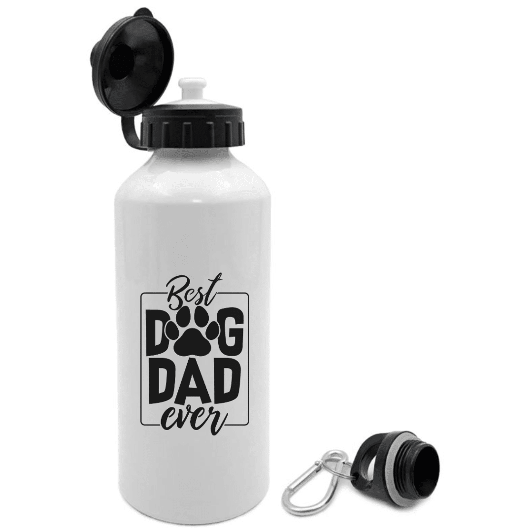 Our Best Dog Dad Ever Sports Bottle comes with two handy attachments – one twist off lid with a with handy carabiner for those long dog walks and a pull up spout, perfect for the gym.