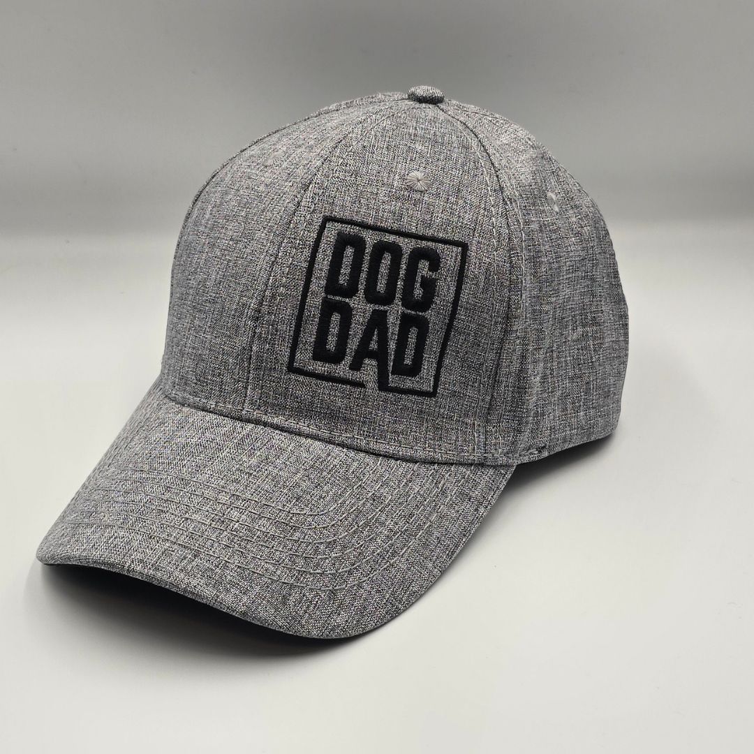 Featuring an adjustable strap for a customized fit and a pre-curved visor to shield your eyes from the sun, this cap is designed with practicality in mind. The “Dog Dad” embroidery, set within a stylish square on the front left, adds a unique and charming touch, making it a standout piece in your collection.