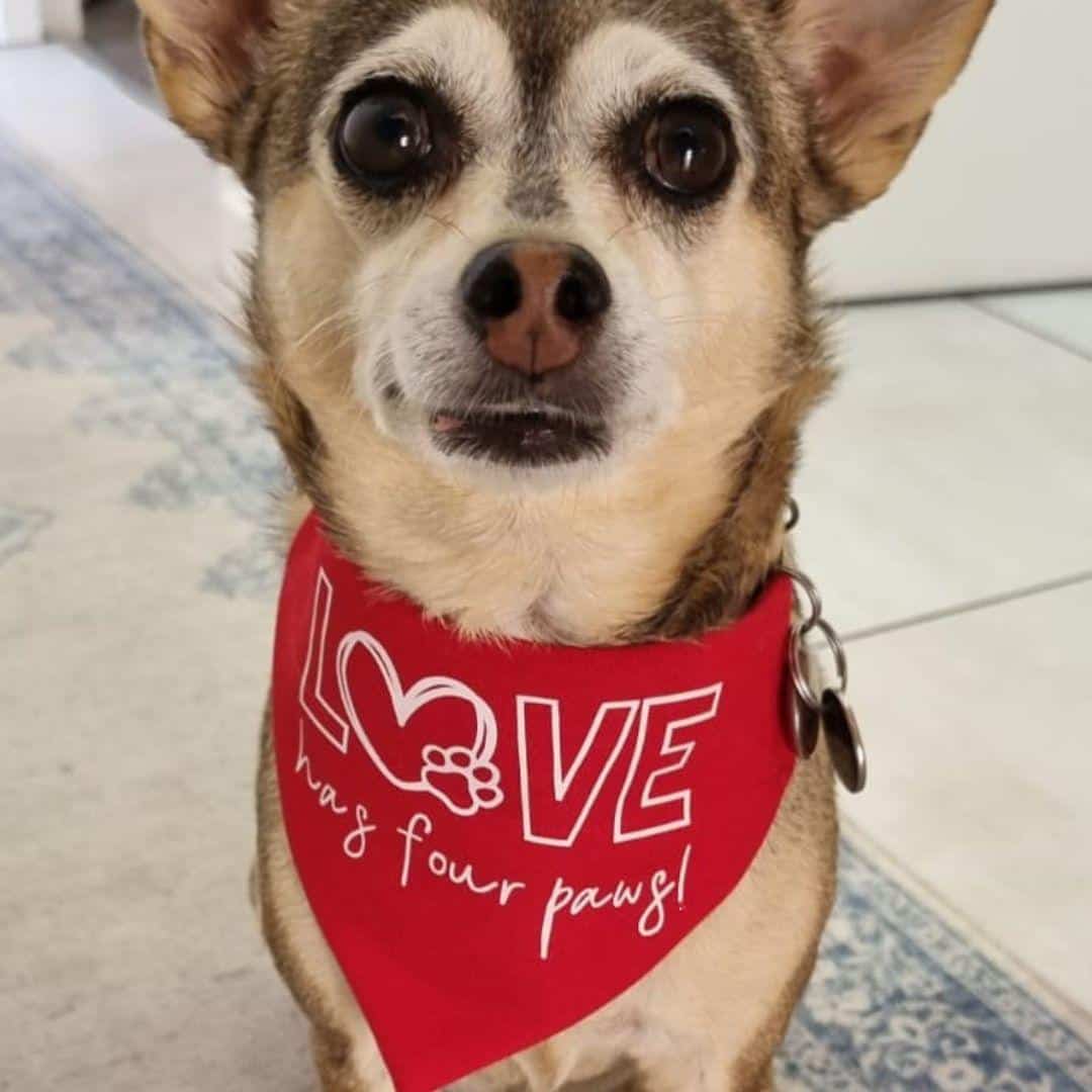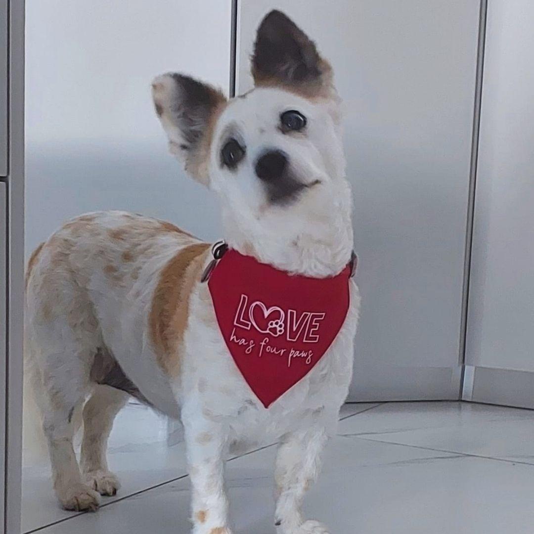 This Love has four paws dog bandana is designed to slip over your dog’s existing collar, making it easy to use and comfortable for your fur-kid to wear. Made from soft yet sturdy material, this bandana is made to last through MANY home photo shoots (we see you! ;-))